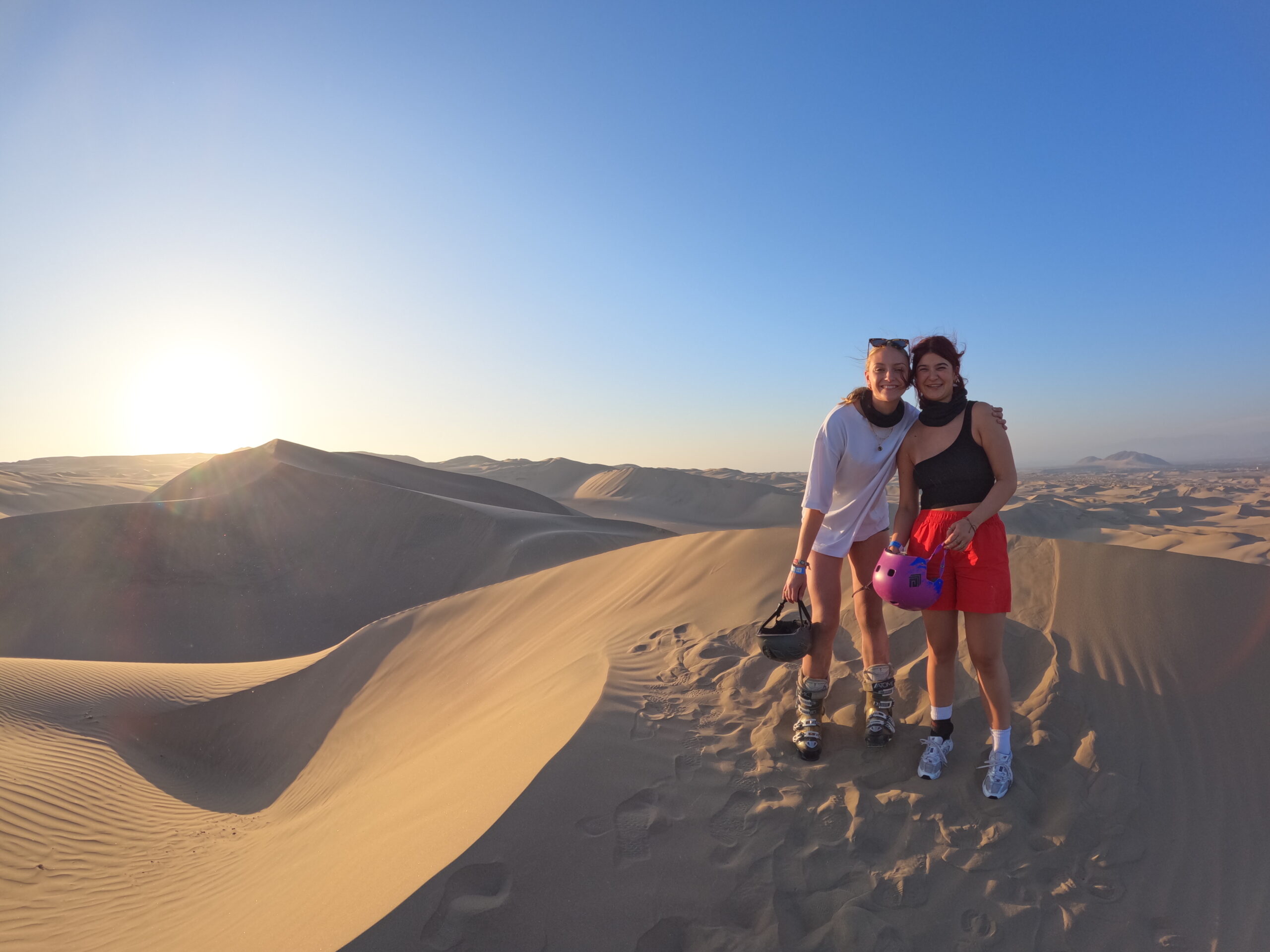 - Regresaremos a Huacachina, donde podrás almorzar y descansar antes de realizar el deporte de aventura extrema en las dunas de Huacachina, donde podrás practicar el sandboarding. Realizaremos una parada en el mirador de la ciudad de Ica, y luego podrás tomar fotos con la puesta del sol. Finalmente, haremos una parada en el mirador de Huacachina, una de las dunas más altas, para tomar la foto más famosa de la laguna (no todas las empresas realizan esta parada).