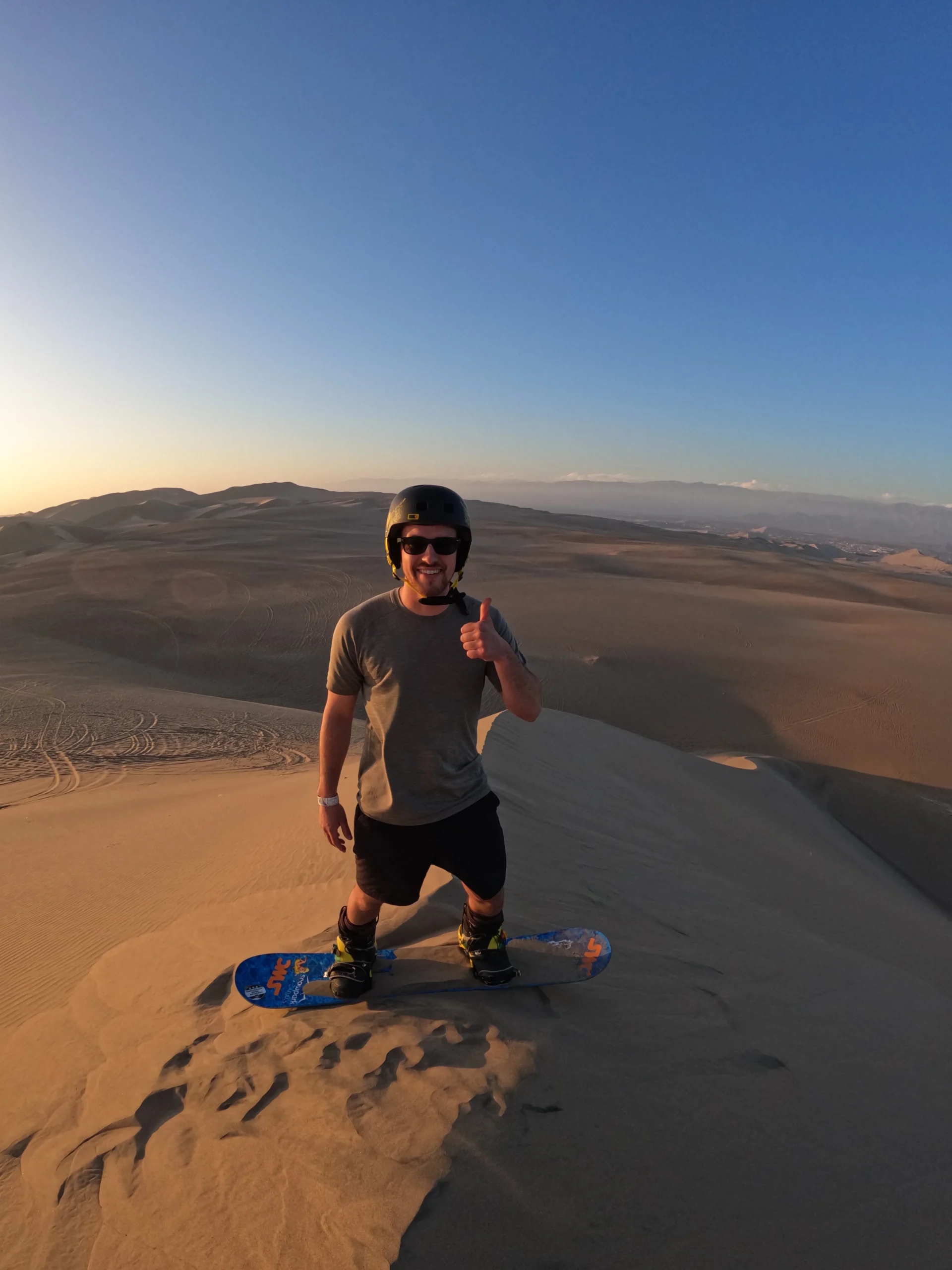 Hospedaje en Huacachina en hosteria suiza. podran desayunar tranquilamente hasta la hora acordada, al rededor de las 11:00am o 12:00pm la movilidad los pasara buscando por su hospedaje para iniciar el recorrido por la Ruta del Pisco en la ciudad de Ica. Alrededor de las 17:00 horas, regresarán al hotel. Luego, se dirigirán al paseo en los carros areneros, podran realizar el deporte en la arena (sandboardig) tambien podran tomar fotos y videos en las diferentes paradas podran disfrutar de la puesta del sol (sunset). Finalmente, retornarán nuevamente al hotel.