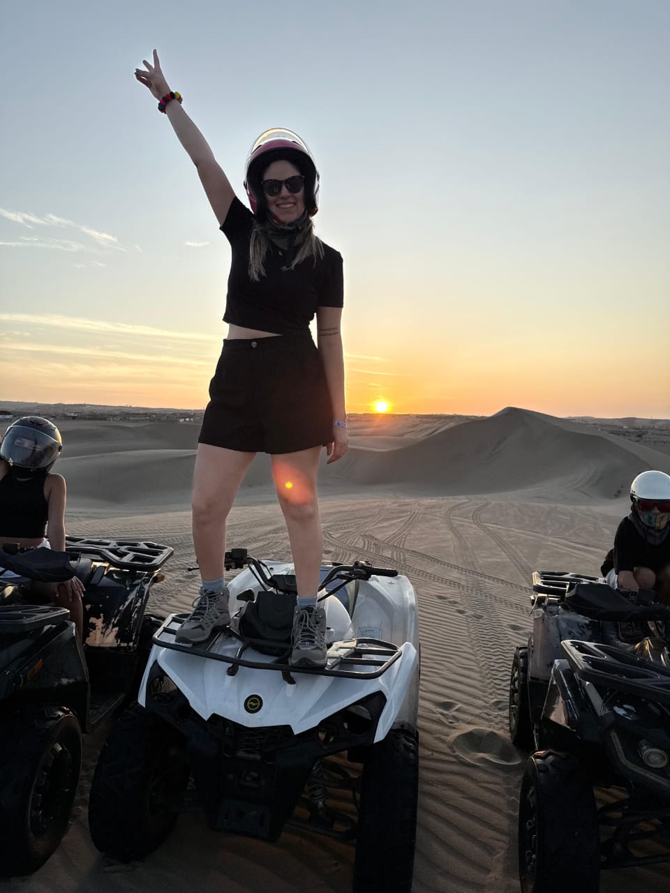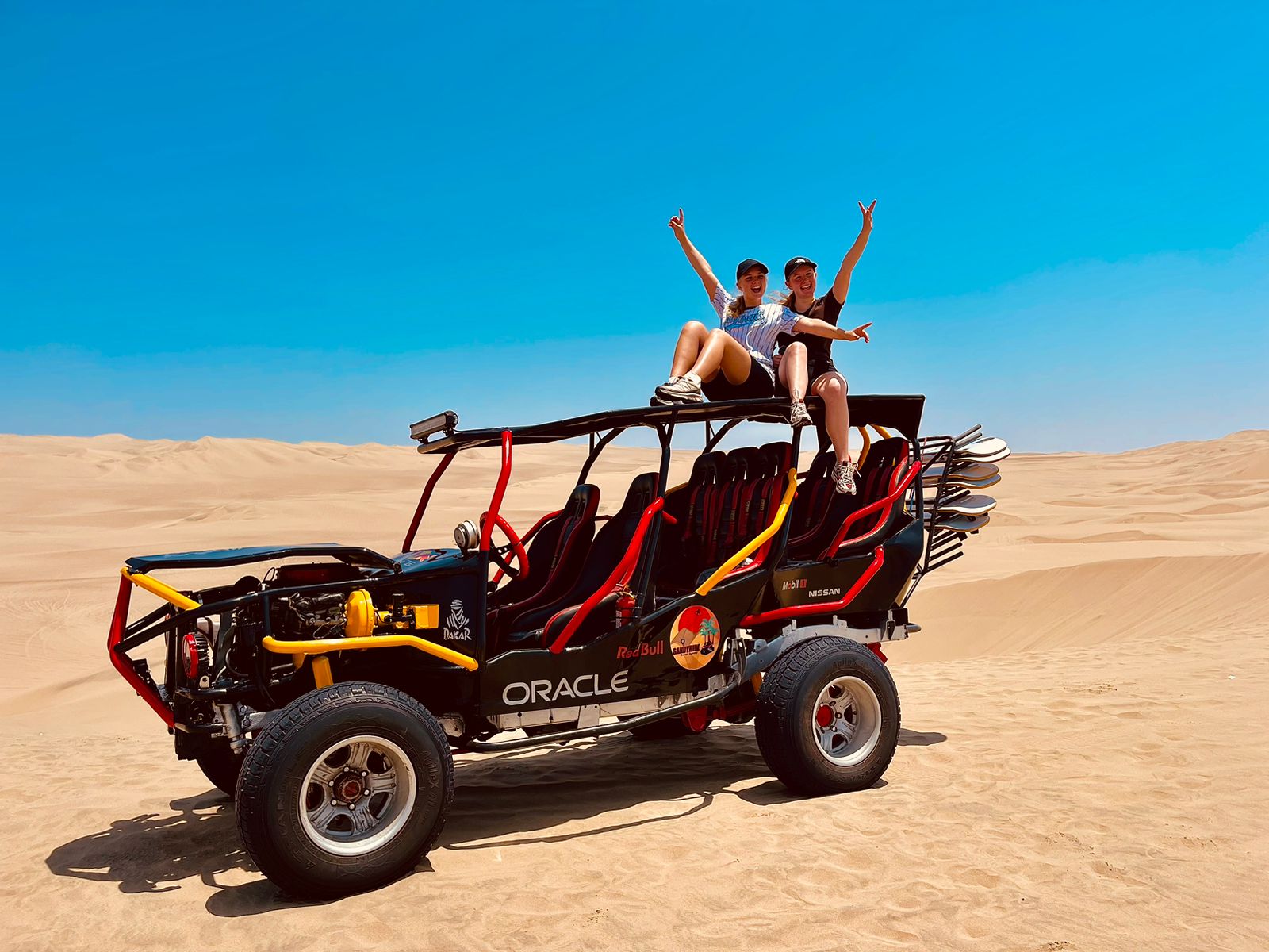 el punto de encuentro es en nuestra oficina o si estas hospedado en huacachina o ica la movilidad los pasara recogiendo para empezar con el paseo de la cuatrimotos, la salida se realizará a las 10:00am. al retornar la movilidad los dejara en nuestra oficina para realizar el city tour. la primera parada es en chocolateria. visitamos una fabrica de chocolate donde podran ver como fabricamos los chocolates mas famosos del Peru. luego visitaremos la palmera de 7 cabezas y la plaza bruja de cachiche y por ultimo una bodega artesanal donde podrán degustar de vino,pisco,crema. todo lo que fabricamos en Ica. la movilidad los llevara nuevamente a nuestras oficina para realizar el tour de buggy. recorrido del buggy dura al rededor de una hora. en esa hora podras disfrutar del desierto de huacachina visitaremos el mirador de la ciudad de Ica tambien podras realizar el deporte de las tablas (sandboardinig). tambien realizamos una parada para ver la puesta del sol y por ultimo la parada de el mirador del oasis de america la Huacachina. el super full day termina en el mirador.