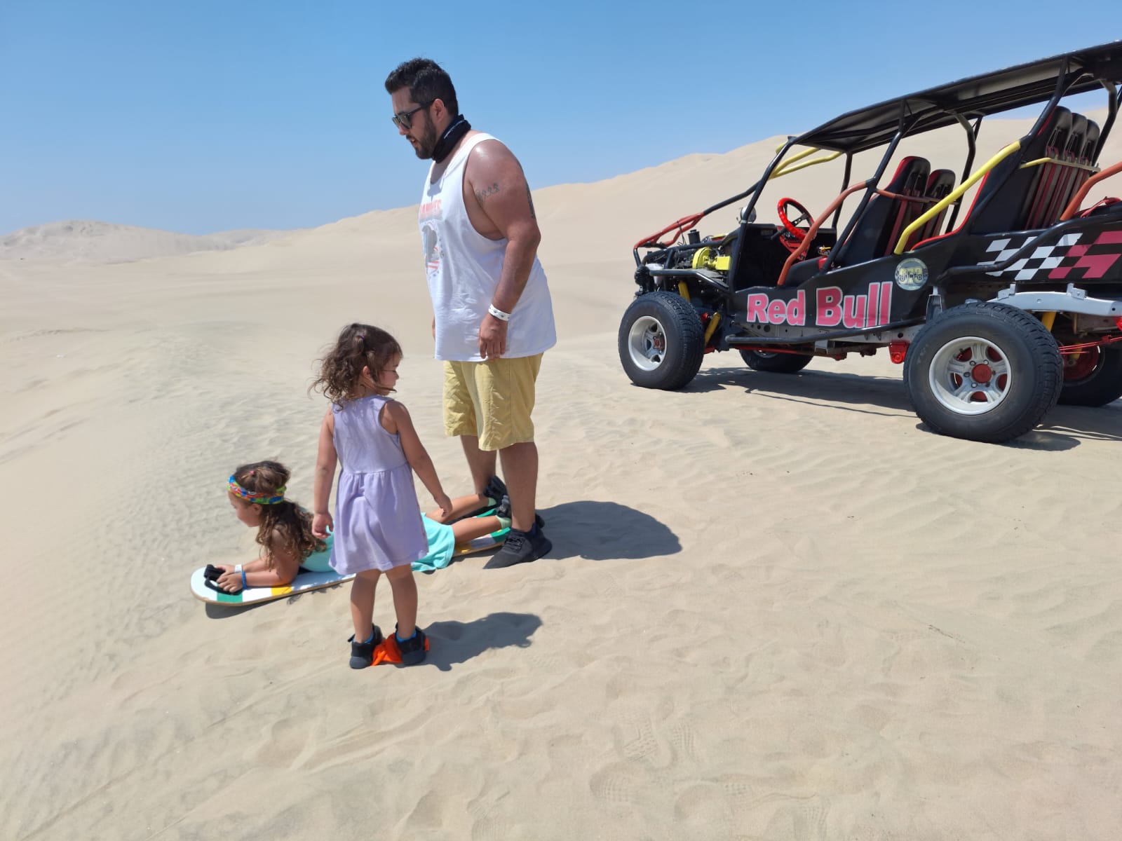El recorrido en las dunas de Huacachina es reconocido mundialmente como un deporte de aventura extrema. Sin embargo, también ofrecemos un tour diseñado específicamente para que puedas disfrutarlo con niños u otras personas mayores. Durante este recorrido exclusivo, el grupo de máximo 5 personas disfrutará de la máxima atención y comodidad. La velocidad es ajustada para garantizar que todos disfruten del paseo sin sentirse asustados. El conductor estará a su disposición en un carro exclusivo, y podrás personalizar la velocidad según lo desees.